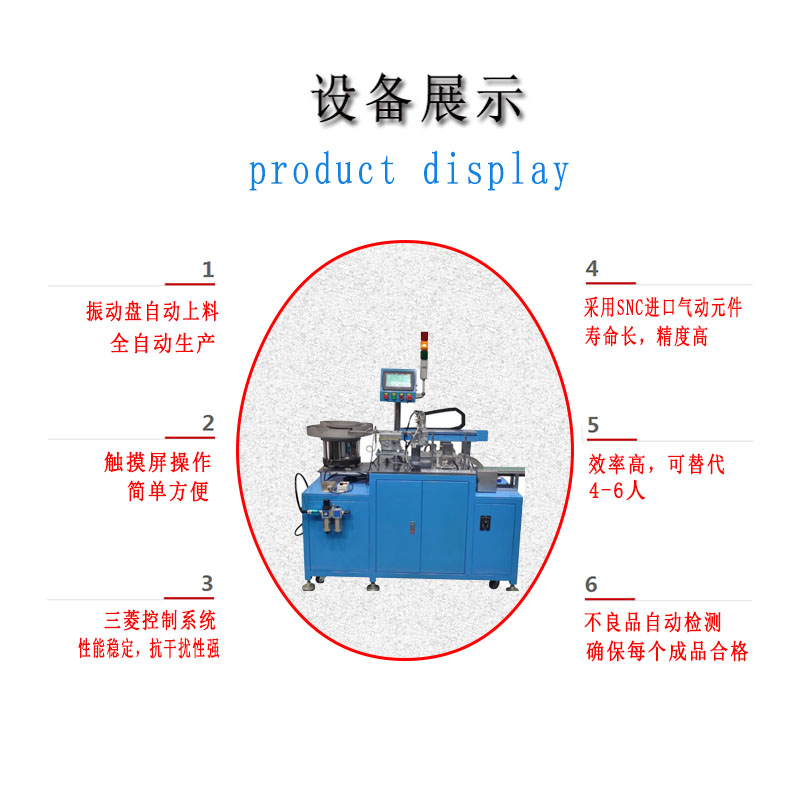 4:人工隻需補充物料,設備自動依次完(wán)成各工序組裝,並自動下料(liào)