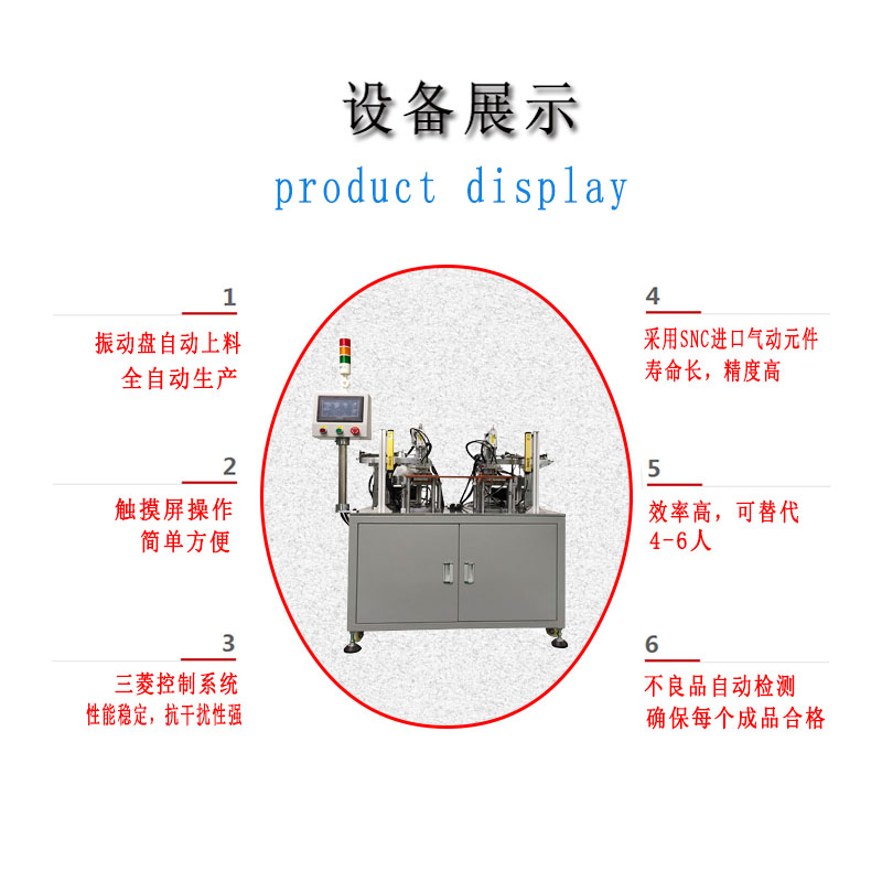 4:人工隻需補充(chōng)物料,設備自動依次完成各工序組裝(zhuāng),並(bìng)自動下料