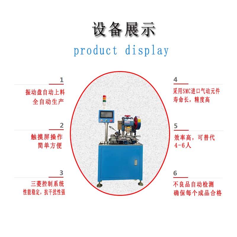 4:人工隻需補充物料,設備自動依次(cì)完成各工(gōng)序組(zǔ)裝,並自動下料