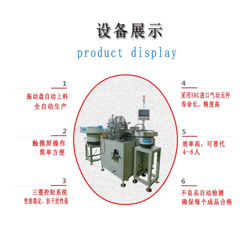 4:人工隻(zhī)需補充物料,設備自動依次完(wán)成各工序(xù)組裝,並自動下料