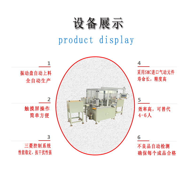 4:人(rén)工隻需補充物料,設備自動依次完成各工(gōng)序組裝,並自(zì)動下(xià)料