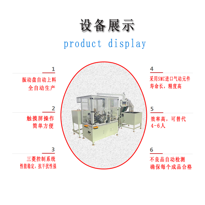 4:人工隻需補充物料(liào),設備自(zì)動依次完(wán)成各工序組裝,並自動下料(liào)