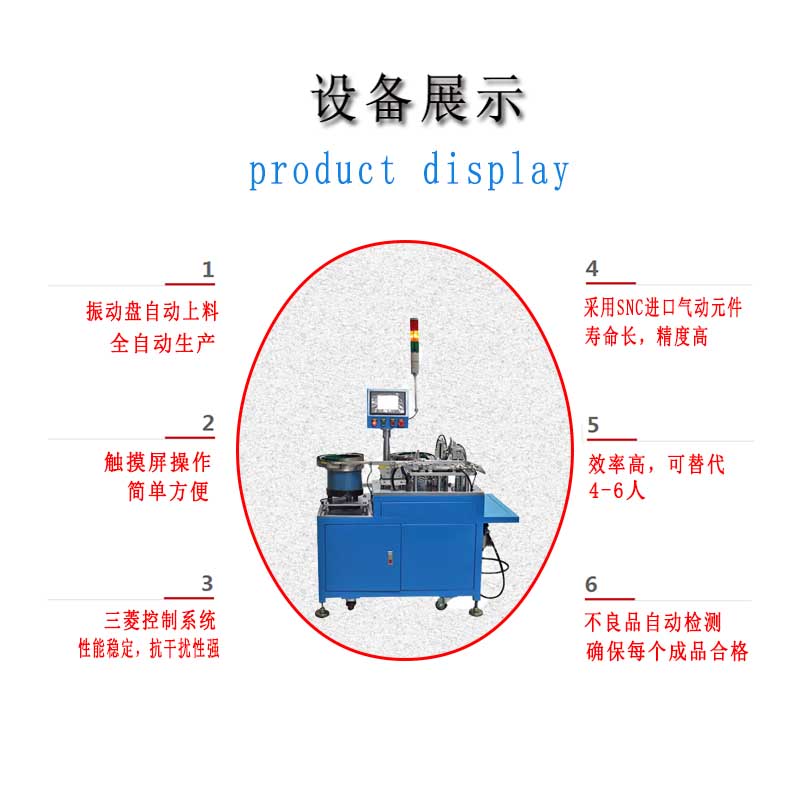 4:人工隻需補充(chōng)物料,設備自動依次完(wán)成(chéng)各(gè)工序組裝,並自動下料