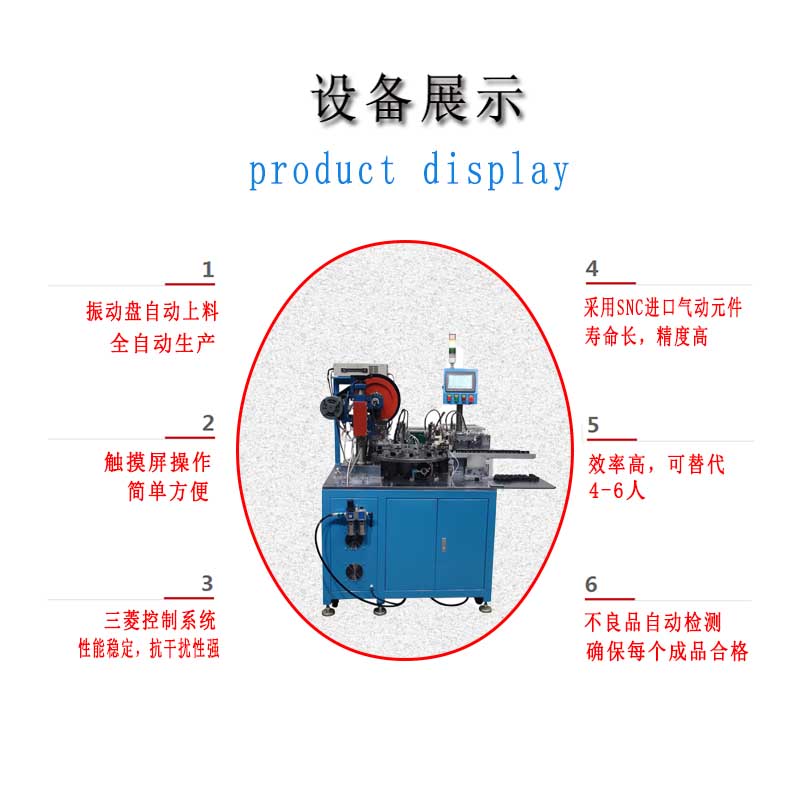 4:人工隻需補充(chōng)物料,設備自動依次完成各工序組裝,並自動下料