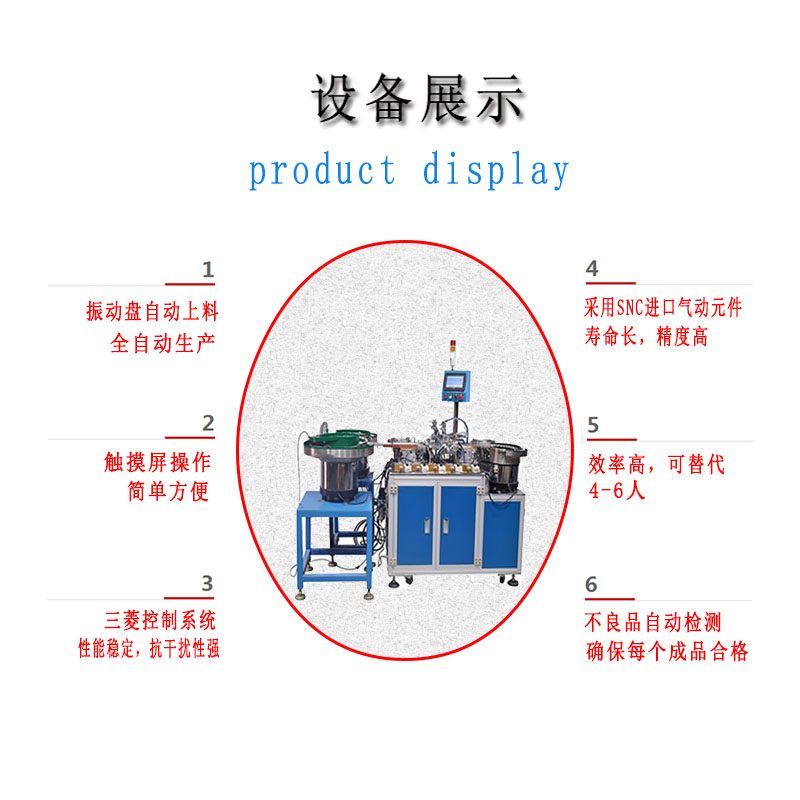 4:人工隻需補(bǔ)充物料,設備自動依次完成各工(gōng)序(xù)組裝,並自動下料
