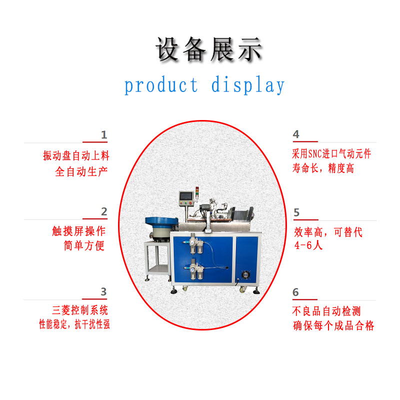 4:人工隻需補充物(wù)料,設備自動(dòng)依次完成各工序組裝,並自動下料