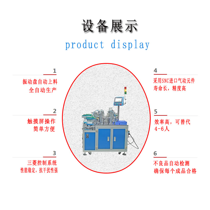 4:人工隻(zhī)需補充物料,設備自動依次完成各工序組(zǔ)裝,並(bìng)自動下料(liào)