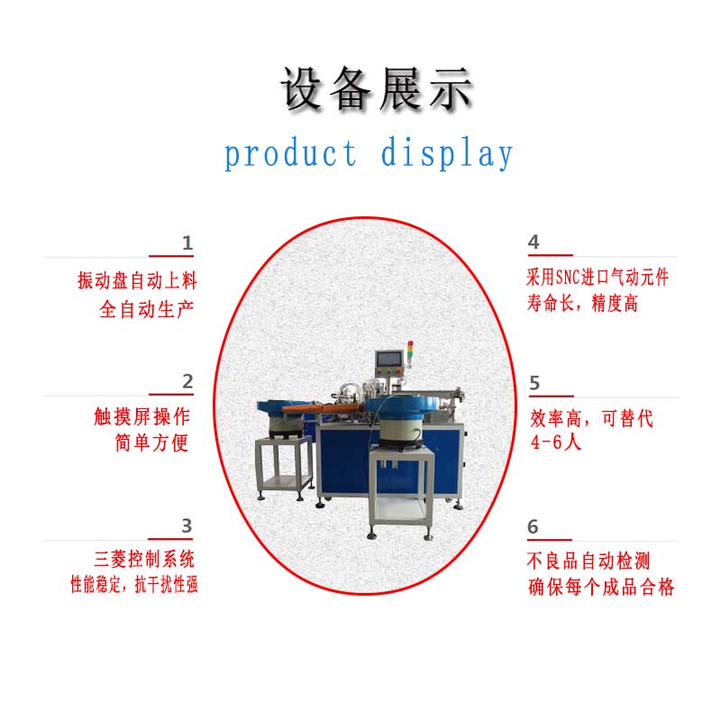 4:人(rén)工隻需補充物料,設備自動依次完(wán)成(chéng)各工序組裝,並自動下料