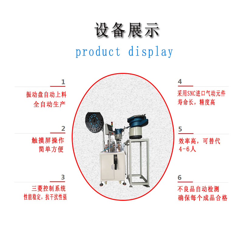 4:人工隻需補充物料,設備自動依次完成各工(gōng)序組裝,並自動下料