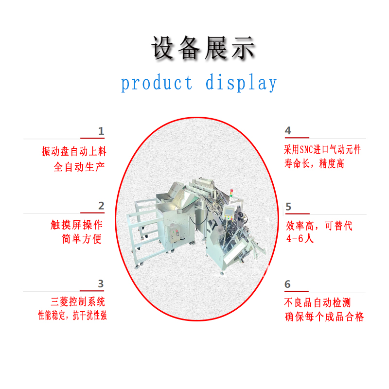 4:人(rén)工隻需補充物(wù)料,設備自動依次完成各工序組裝,並自動下料(liào)