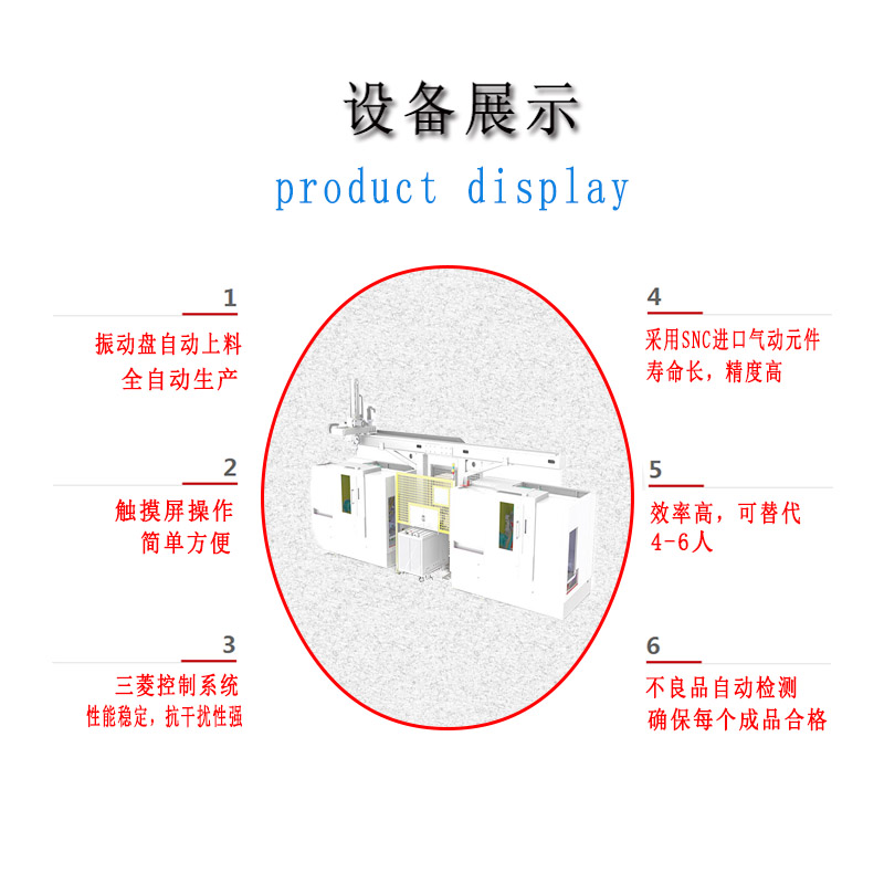 4:人工(gōng)隻(zhī)需補充物料,設備自動依次完成各工序組裝,並自動下料