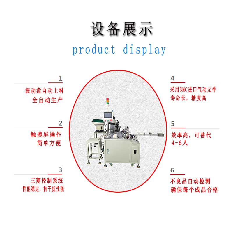 4:人工隻(zhī)需補充(chōng)物料,設備自動依次(cì)完成各工序組裝,並自動(dòng)下料