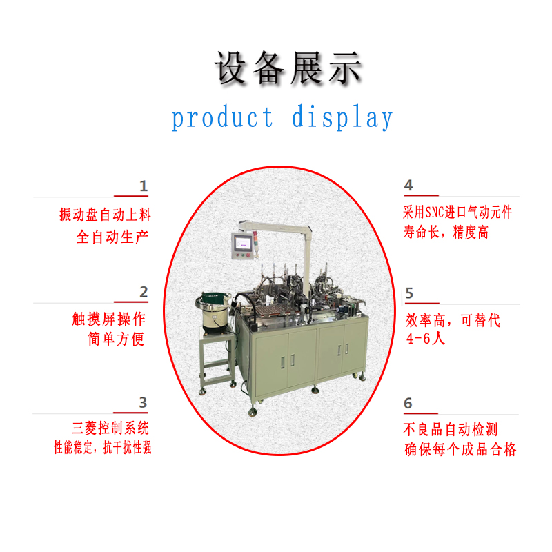 4:人工隻需補(bǔ)充物料(liào),設備自動依次完成各工序組裝,並自動下料