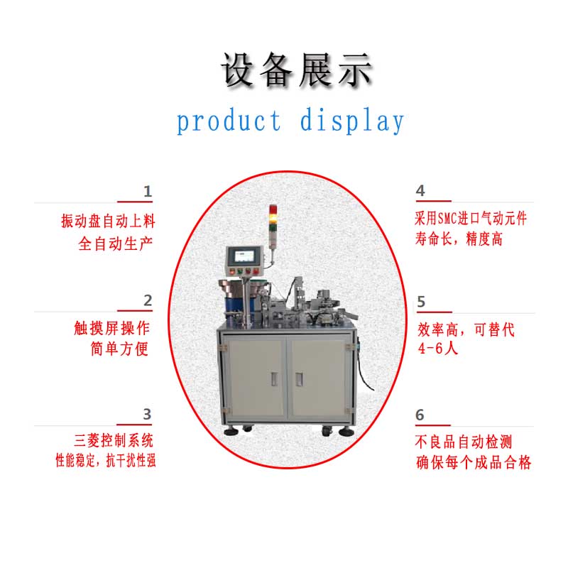 4:人工隻需補(bǔ)充物料(liào),設備自動依次完成各工序組裝,並自動下料