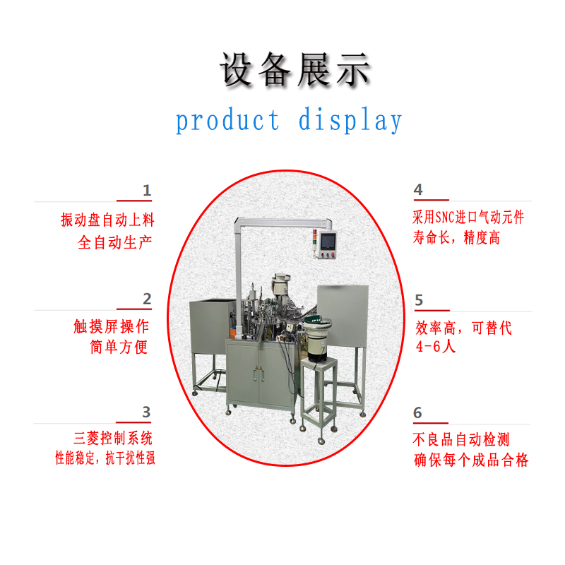 4:人工隻(zhī)需補充物料,設備自動依次完(wán)成各工序組裝,並自動下料