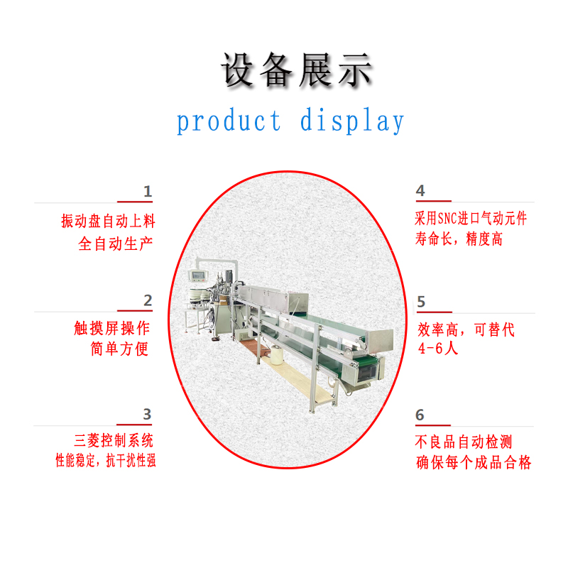 4:人工(gōng)隻需補充物料,設(shè)備自動依次完成各工序組裝,並自動下料